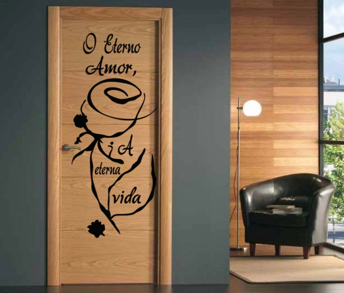 Autocolante para portas a rosa do amor. Uma preciosa rosa, com a frase O eterno amor, a eterna vida. Para oferecer estilo e criatividade ao seu ambiente.